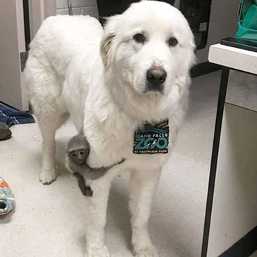 There could be no website that discussed the Idaho Falls Zoo without special acknowledgement of Justice, a GREAT Pyrenees. Justice, a rescue dog from the Ashton Idaho area, came to the zoo in April 2017 specifically to serve as a surrogate mother for Honda, a lion cub. Justice was found alone and caring for not only her puppies, but also a weak sheep. Zoo officials brought Justice and her mothering instincts to the zoo to help the lion cub. Honda had sustained a wound while being carried by his Mom, Kimani, and he needed time away for the wound to heal.